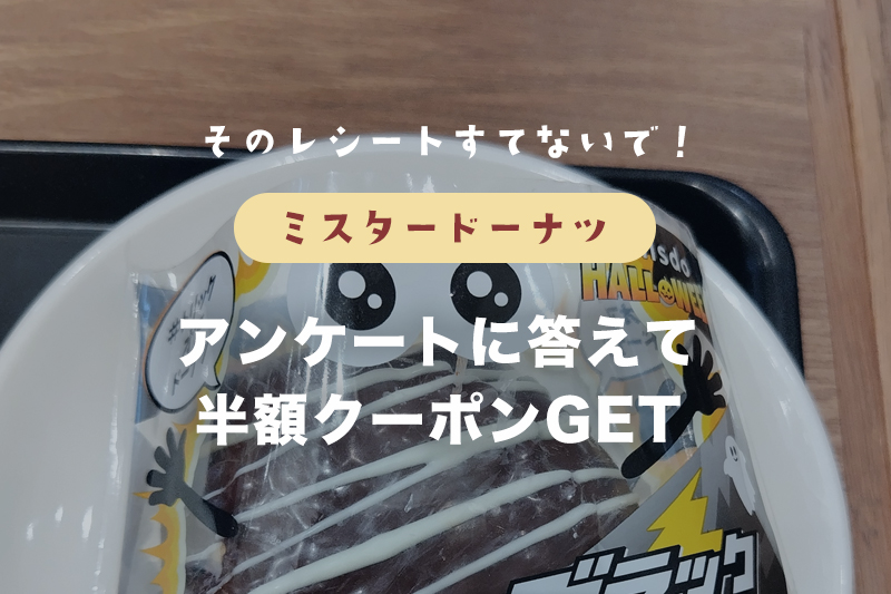 キャンペーンは9月29日〜10月31日で、ドーナツを購入したレシートに印字されているQRコードからアンケートに回答をすると、次回から使える半額クーポンがもらえます。(クーポンは携帯・スマホ専用)